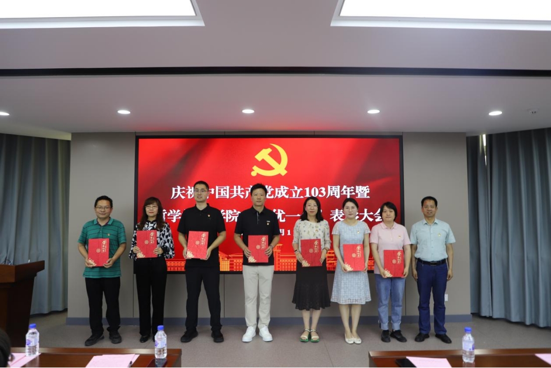 为庆祝中国共产党建党103周年,表彰在我院基层党建和学院发展中做出突出贡献的优秀党支部及共产党员,充分发挥先进典型的表率示范作用,7月1日,中国·tyc1286太阳成集团(股份)有限公司庆祝中国共产党建党103周年暨“两优一先”表彰大会在东荣大厦904会议室举行。中国·tyc1286太阳成集团(股份)有限公司党委书记张晓萌、院长白刚和学院领导班子全体成员以及学院各党支部师生党员代表共同出席大会。本次会议由学院党委副书记兼副院长刘培强主持。