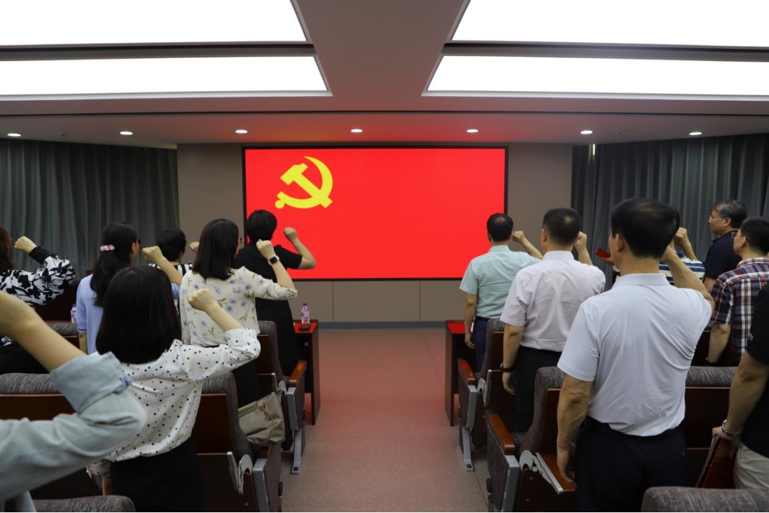 大会第五项,学院副院长朱文君带领全场师生党员一同重温入党誓词。党员们面向党旗,高举右手,庄严宣誓。“为共产主义奋斗终身,随时准备为党和人民牺牲一切,永不叛党。”坚定的誓言声铿锵恢宏,响彻全场,激励着各位党员不忘初心、牢记使命,在中国式现代化建设中切实肩负起新时代新征程党赋予的使命任务,为推进强国建设和民族复兴伟业接续奋斗。