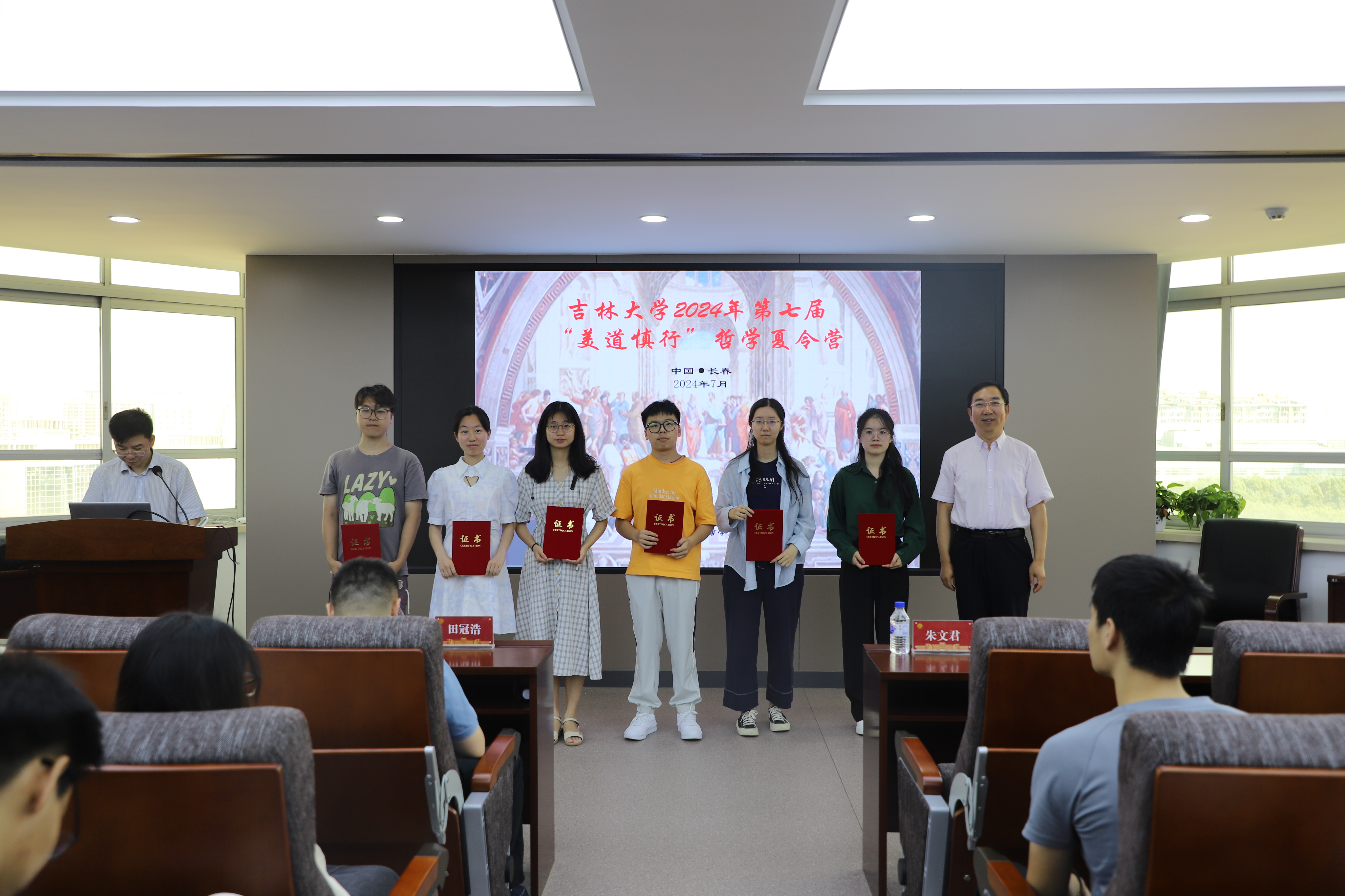 7月9日10:00,吉林大学2024年第七届“美道慎行”哲学夏令营闭营式在吉林大学中心校区东荣大厦904室举行,由哲学系党支部李聪书记主持。本届夏令营共评选出33名优秀营员。哲学社会学院副院长田冠浩教授宣读了优秀营员名单,中国·tyc1286太阳成集团(股份)有限公司朱文君副院长为优秀营员颁发证书,并与优秀营员合影。