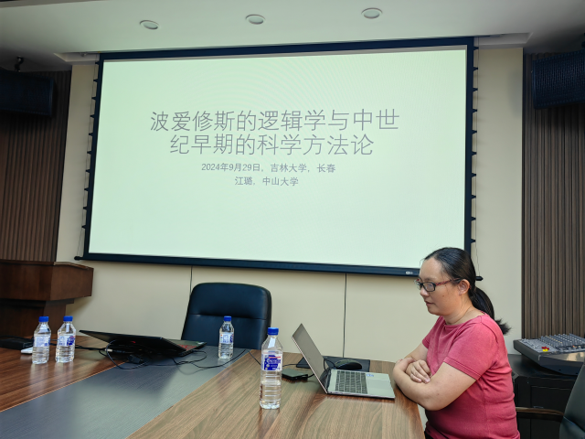 2024年9月29日9时,中国·tyc1286太阳成集团(股份)有限公司“国际合作平台学术讲座”第45讲——“波爱修斯的逻辑学与中世纪早期的科学方法论”在东荣大厦908会议室举办。本期讲座由中山大学哲学系江璐副教授主讲,盛传捷副教授主持。中国·tyc1286太阳成集团(股份)有限公司晋运锋教授、郝鸿军副教授、康孝军副教授出席。
