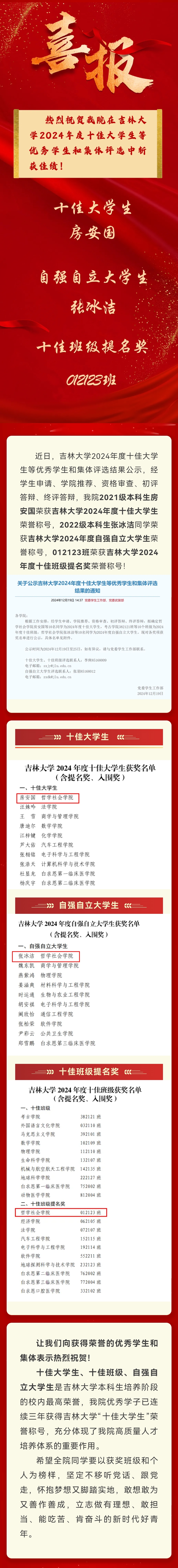 喜报 | 我院在吉林大学2024年度十佳大学生等优秀学生和集体评选中斩获佳绩!