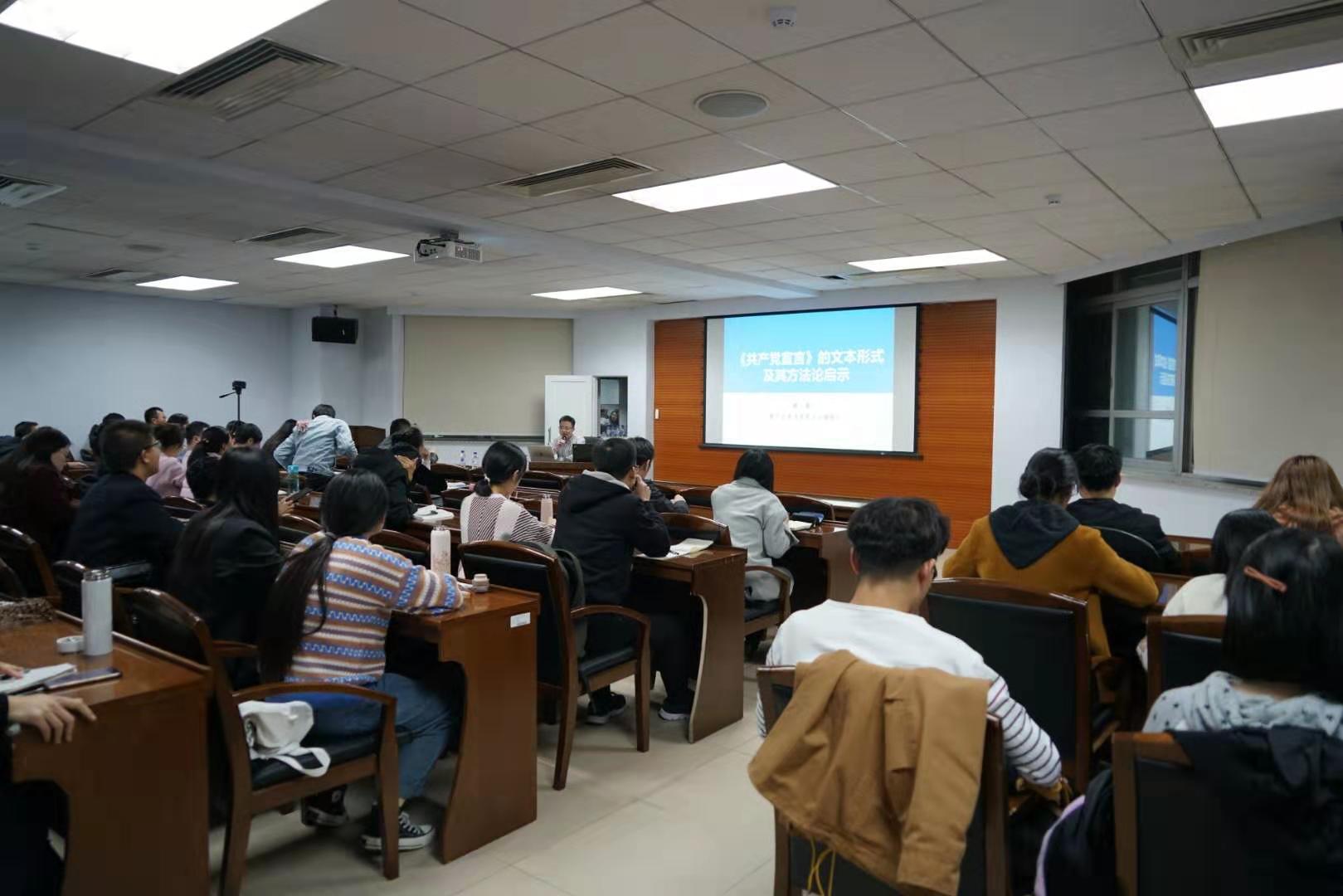 10月19日下午6:30,中国·tyc1286太阳成集团(股份)有限公司第67场名家系列讲座在东荣大厦904会议室举行。复旦大学马克思主义学院林青副教授受邀为主讲人做了关于“《共产党宣言》的文本形式及其方法论启示”的主题讲座。本场讲座由中国·tyc1286太阳成集团(股份)有限公司田冠浩副教授主持。