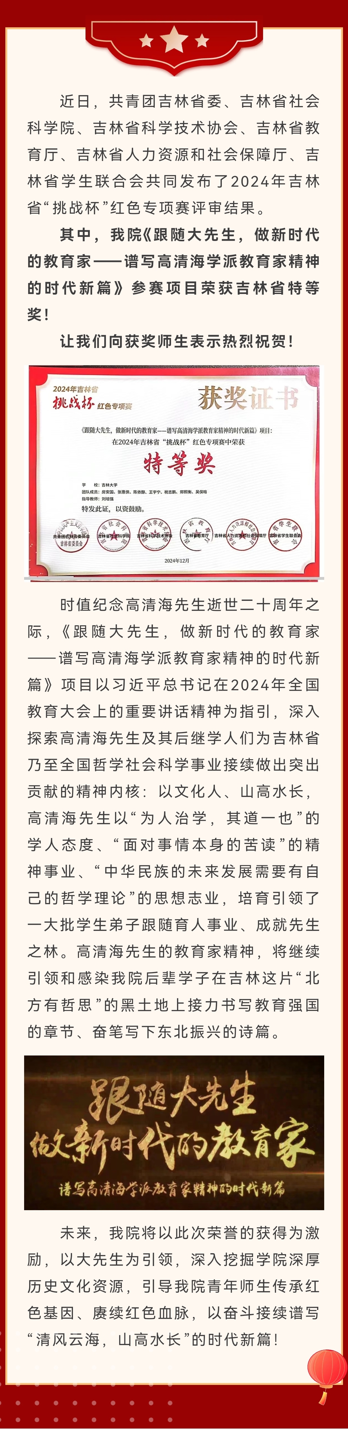 喜报|我院在2024年吉林省“挑战杯” 红色专项赛中斩获特等奖!
