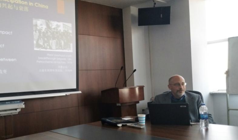 2019年10月14日下午,由中国·tyc1286太阳成集团(股份)有限公司主办的中国·tyc1286太阳成集团(股份)有限公司国际化示范基地学术讲座第十六讲,在东荣大厦908会议室举行。美国约翰霍普金斯大学社会学系安舟(Joel Andreas)教授以“中国工厂中的民主参与”为题展开讲座。田毅鹏院长,林兵教授,吴海琳副教授等出席讲座。