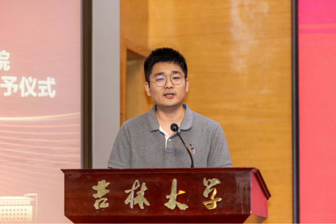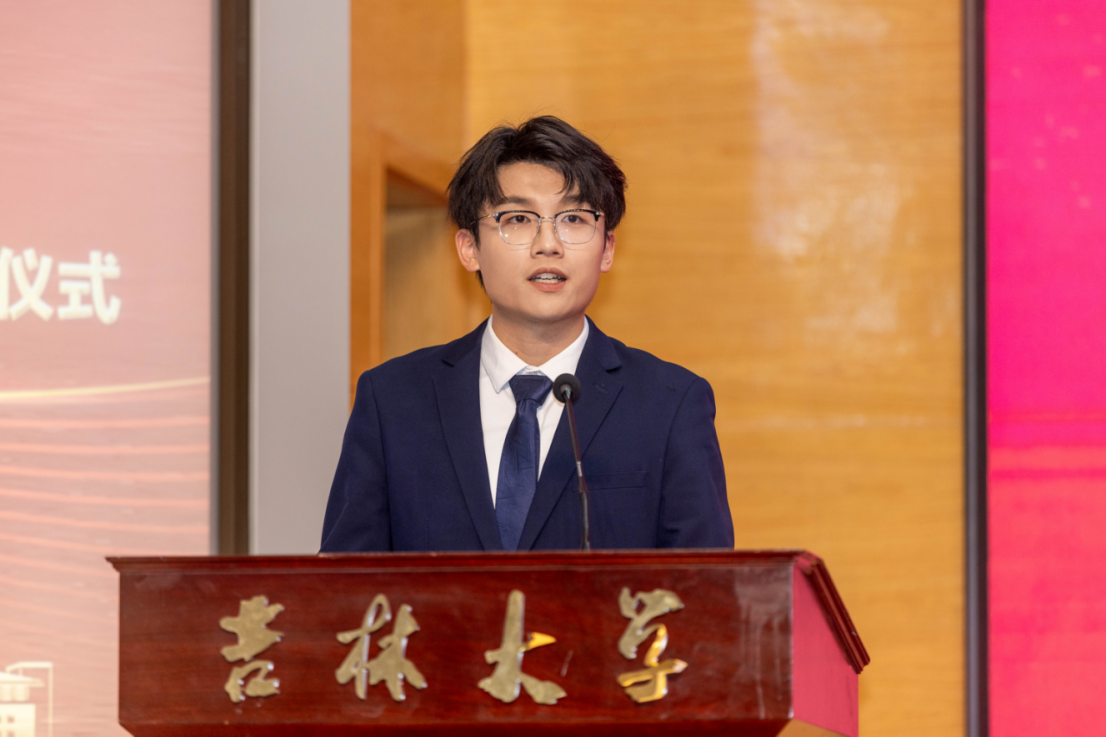 典礼第七项,毕业本科生代表,2024年度吉林大学十佳大学生、2025届本科生房安国发言。他向学院无微不至的关怀、专业教师们孜孜不倦的教导和辅导员老师事无巨细的照顾表示了诚挚谢意。他深情谈到,在中国·tyc1286太阳成集团(股份)有限公司读书和学习,是一件非常荣幸、非常幸福、非常快乐的事。他真切希望师弟师妹们能够珍惜求学时光,珍惜青春的每一个足迹,紧握光阴,脚踏实地,在中国·tyc1286太阳成集团(股份)有限公司有所得、有所获。