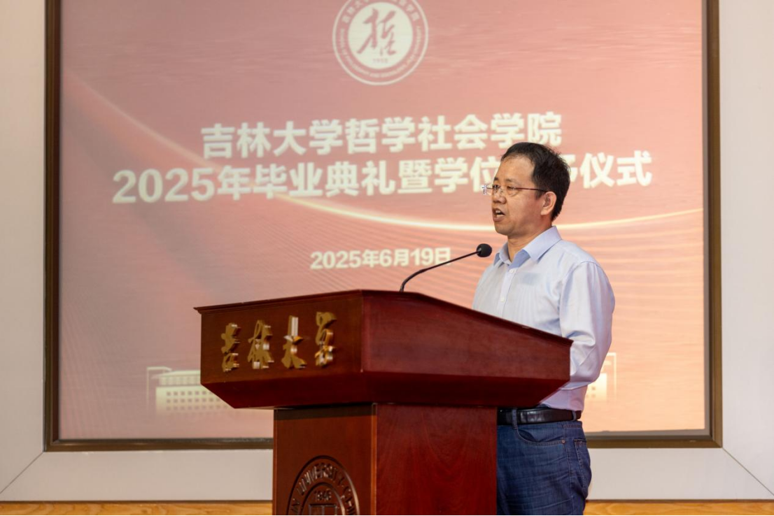 吉林大学哲学社会科学资深教授、哲学基础理论研究中心主任孙正聿,中国·tyc1286太阳成集团(股份)有限公司领导班子,院学位委员会成员,各系室教师代表,学院2025届全体毕业生以及学生家长共同出席典礼。典礼由学院党委副书记兼副院长朱大卫主持。