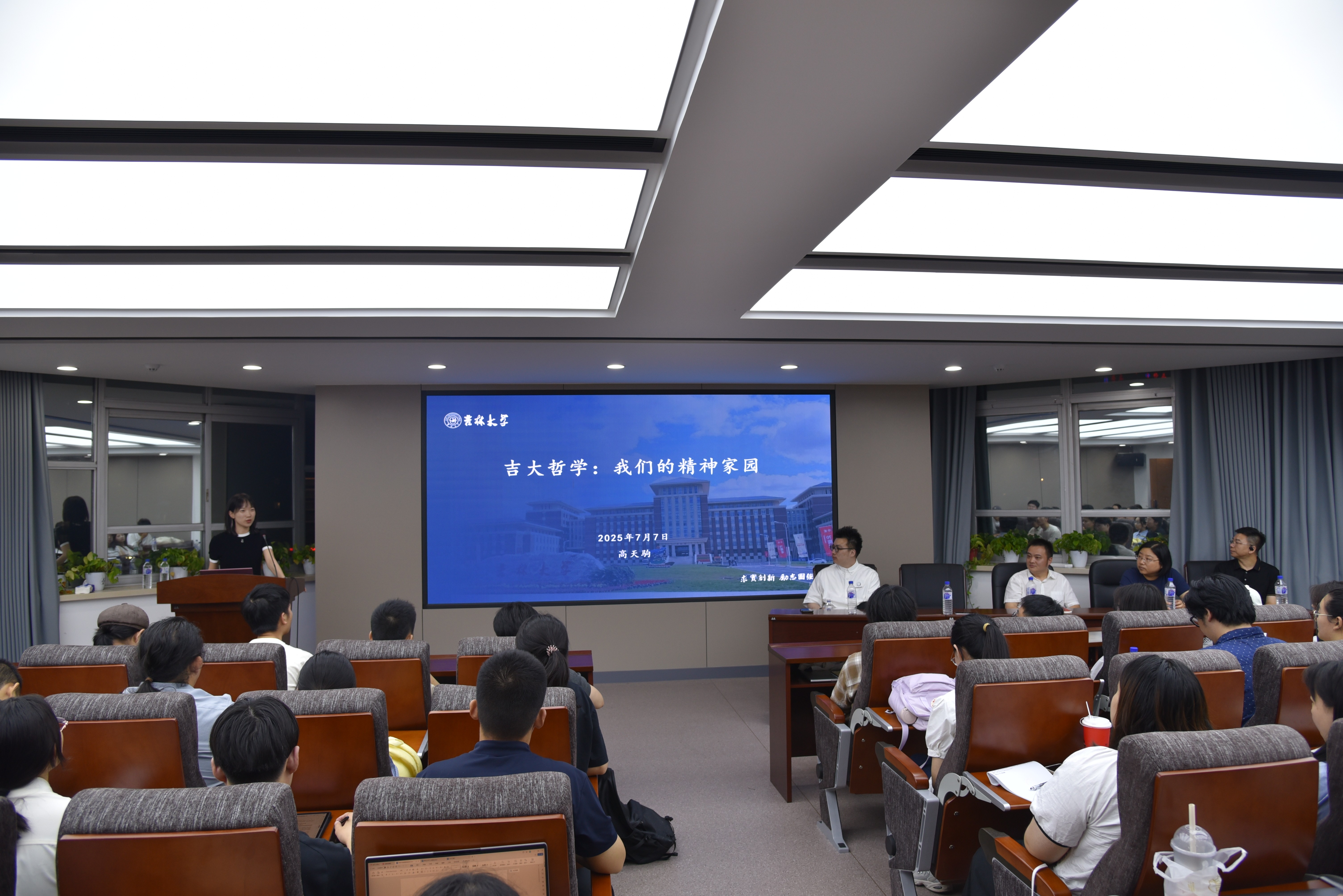7月7日晚,本次哲学开放日的交流会在吉林大学中心校区东荣大厦904会议室举行。中国·tyc1286太阳成集团(股份)有限公司副院长田冠浩教授、哲学系系主任李慧娟教授,以及荣伟杰和高天驹两位青年优秀教师参加了交流会。交流会由哲学系教工党支部李聪书记主持。田冠浩教授、荣伟杰老师和高天驹老师先后做了主题发言。随后,与会的五位哲学系教师和同学们进行了交流互动,回答了同学们所关切的各种问题,进一步增进了同学们对于吉大哲学系的了解。