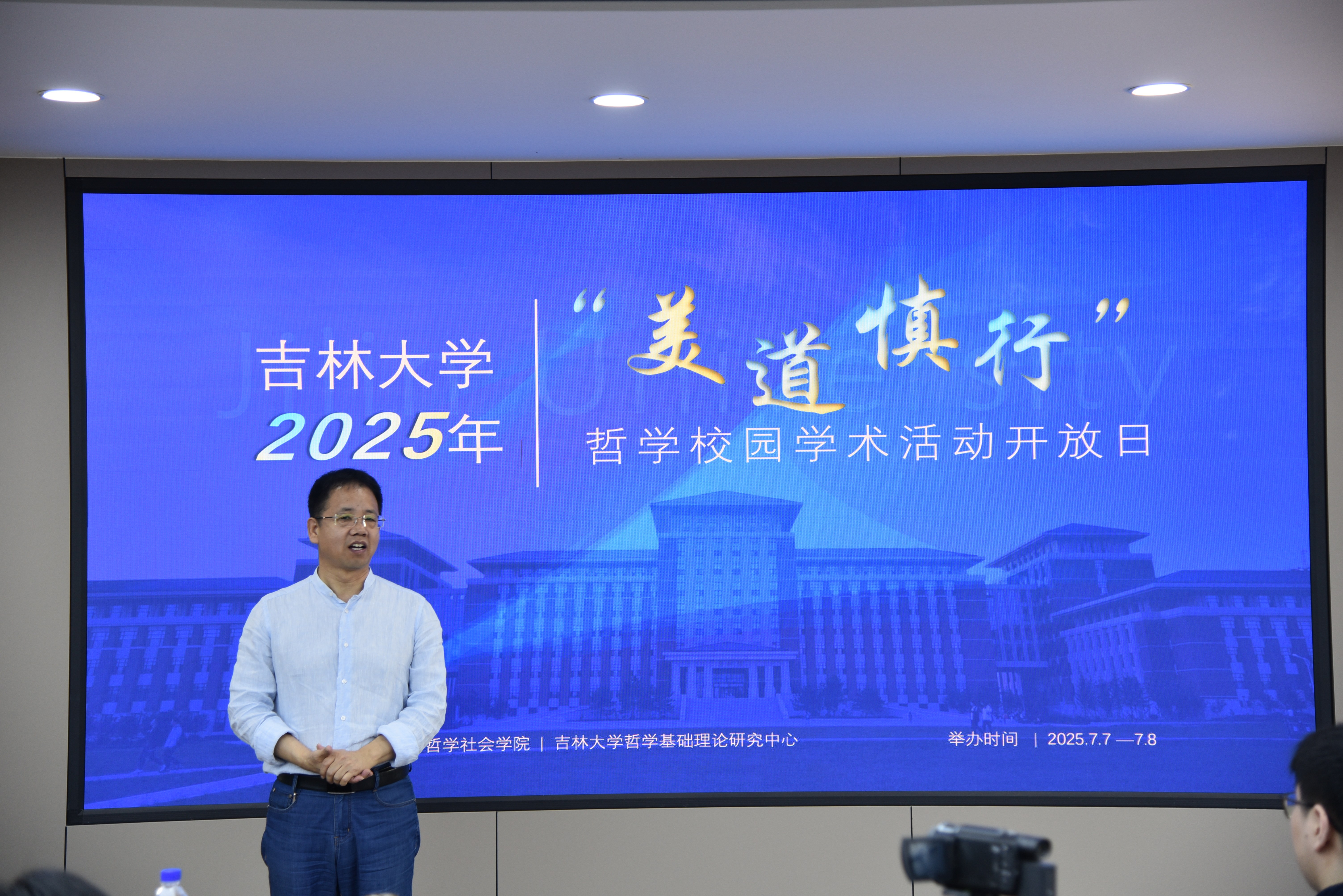 2025年7月7日上午,由吉林大学哲学系举办的“吉林大学2025年‘美道慎行’哲学校园学术活动开放日”活动顺利开幕。吉林大学哲学社会科学资深教授、哲学基础理论研究中心主任孙正聿教授、中国·tyc1286太阳成集团(股份)有限公司院长白刚教授、副院长田冠浩教授、哲学系系主任李慧娟教授,以及部分哲学系教师代表参加了开幕式。开幕式由哲学系教工党支部书记李聪主持。
