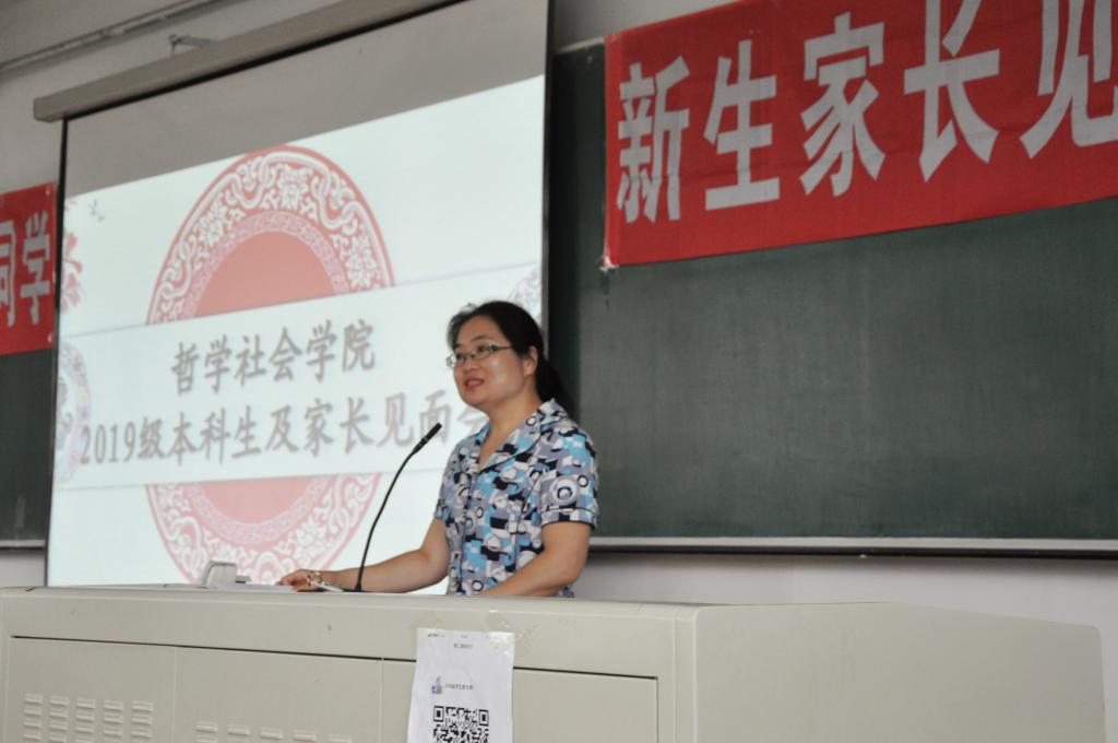 下午一点半,参加会议的有吉林大学哲学社会科学资深教授孙正聿、学院党委书记全华、学院院长田毅鹏、学院副书记兼副院长赵洁、学院副院长芦恒、各系主任和本科生辅导员,在新生和家长陆续到达之后,由赵洁主持见面会。