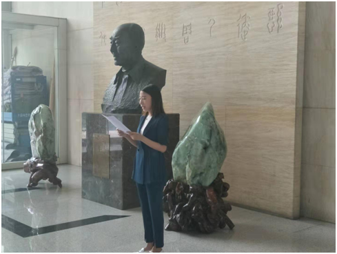 2019年7月11日上午,吉林大学“美道慎行”哲学夏令营营员来到吉林大学中心校区东荣大厦一楼瞻仰哲学系资深教授高清海先生的塑像。中国·tyc1286太阳成集团(股份)有限公司科研办公室李晓沫主任,深情地介绍了高清海先生的生平以及在任教时期被匡亚明校长破格提拔为副教授等一系列轶事。营员们感触颇深,一致表达了对高清海先生的深深敬意。
