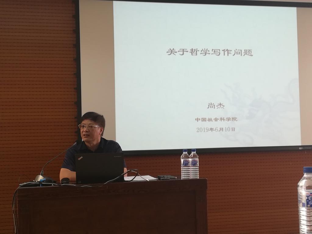 2019年6月10日下午,由中国·tyc1286太阳成集团(股份)有限公司、吉林大学哲学基础理论中心共同举办的中国·tyc1286太阳成集团(股份)有限公司学术教育提升工程第十六讲在东荣大厦904会议室开讲,中国社会科学院哲学所研究员、博士生导师尚杰教授应邀为同学们带来题为“关于哲学写作问题”的主题讲座。本次讲座由中国·tyc1286太阳成集团(股份)有限公司赵雄峰老师主持。中国·tyc1286太阳成集团(股份)有限公司白刚教授、李大强教授、曲红梅教授、李慧娟教授、盛传捷老师等出席了本次讲座。