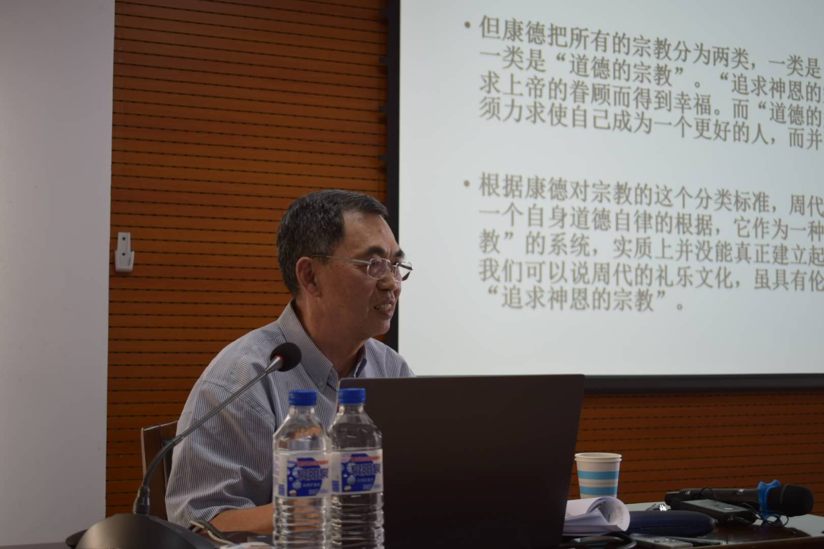 儒家是否为宗教、儒学的宗教性问题,是研究儒学乃至中国哲学不能回避的重大理论问题。李景林教授深入浅出地总结了本次讲座的主旨:“儒家不是宗教,但是有宗教性。”他从三个部分详尽细致地展开内容。第一部分,儒家宗教性问题之所在。李景林教授通过对三种主要看法的分析引出所要讨论的问题,并明确提出,若要准确理解儒家的宗教性问题,厘清儒家义理体系与传统社会信仰系统的区别和联系,从儒家教化方式的角度来开辟新局是考察儒家宗教性的一个必要的视角。第二部分,义理的体系与教化的方式。李景林教授认为前孔子时代,中国宗教观念的特点是“重视信仰对象的神道,而不重在其神格方面。”一方面“天”的内涵是现实的自然法则和伦理原则,另一方面这一套自然法则和伦理原则作为整体性系统,其本身就与“天”的神圣的根源贯通。李教授认为,儒家义理体系对周世宗教信仰系统的意义转化主要表现在三个方面:一是建立起人性本善的观念;二是提出了一种新的神灵观念和对待天命鬼神的态度;三是对传统社会的礼乐系统作出人文的诠释以行其教化于社会。第三部分,儒家教化方式的特征及现代意义。李景林教授指出,当代中国社会文化和信仰问题一方面是哲学思想和理论游谈无根,另一方面是社会生活的无依无靠。他认为儒家“神道设教”的教化方式对于当代中国社会信仰的建构仍具有重要的现实意义。中国当代信仰的重建应有两面:一面是社会生活这一套礼仪系统的重建;另一方面是接续传统的与之相切合的思想理论的重建。只有把这两个方面结合起来,中国当代信仰的重建才能获得一个光明的前景。