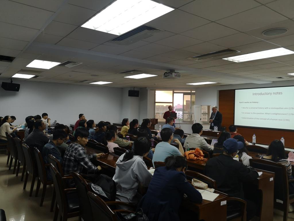 2019年5月31日,比利时鲁汶大学哲学高等研究所荣誉教授、北京大学特邀教授,国际知名学者、康德哲学专家、德国古典哲学专家Martin Moors教授应邀为我院师生做题为“Ideas on Kant’s Idea of a Universal History with a Cosmopolitan Aim”的学术讲座,我系外籍教师Nicholas Rimell主持了本次讲座。
