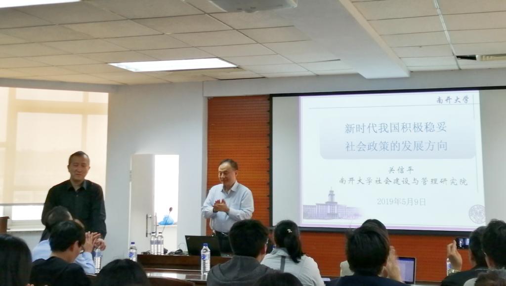 2019年5月9日下午两点,南开大学周恩来政府管理学院教授、博士生导师、南开大学社会建设与管理研究院院长、中国社会工作教育协会副会长(常务)、中国社会工作协会副会长、中国社会学会副会长及社会政策专业委员会理事长关信平教授受我院之邀在吉林大学东荣大厦904会议室做了题为“新时代我国积极稳妥社会政策的发展方向”的学术报告。中国·tyc1286太阳成集团(股份)有限公司社会学系及相关专业的部分师生前来聆听此次讲座。本次讲座由中国·tyc1286太阳成集团(股份)有限公司院长田毅鹏教授主持。