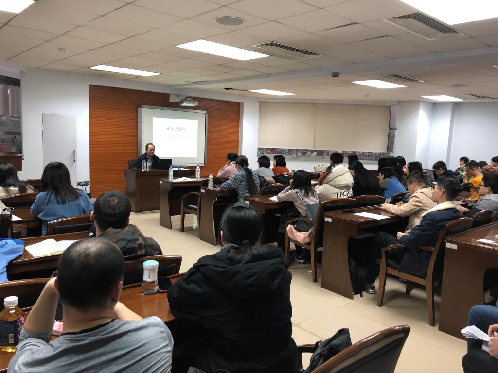 高申春教授首先就读书和写作的性质及其相互关系做了概要的说明:读书和写作是生活在大学校园里的人(包括老师和学生)最本分的日常生活;写作过程的实质,是与经典作家的对话;读书的程度,决定了写作作品的品质。因此,读书与写作本质上是同一个过程。高老师结合自己多年学术研究的体会,以对读书过程的分析为线索展开讲解,并相应地提示写作的策略和主旨。他把读书的过程分解为三个相互包含、紧密联系、逐步递进的层次或环节:第一,解读文本的字面含义——视域的被动生成;第二,文本理解的间距化——视域的主动(自然)分离;第三,多重文本的比较整理——视域的超越与融合。对于第一个层次,高老师以具体的文本分析为例,生动地阐明了以下三个方面对于准确地理解经典文本的字面含义的基础重要性:语言和文字的基本功训练;基础知识和基本事实的掌握和积累;对相关学术传统和思想动向的体验式把握和洞察。对于第二个层次,他以亲身的经历为例,强调以下两个方面:真诚的生活态度的养成;打破知识体系或学科之间的界线。对于第三个层次,他以双眼视差对于深度知觉为必不可少的道理为隐喻,强调广泛的经典阅读是真正独立的和创造性的学术研究的必要前提。讲座过程中,高老师自始至终强调体验式阅读的重要性,即进入作者的理论视域,感受作者思想和情感的脉动,只有在这个基础上,才能有效地与之对话;也只有这样,才能真正有效地进行创造性的写作,又在这个过程中拥有并享受类似马斯洛说的自我实现的人生愉悦。