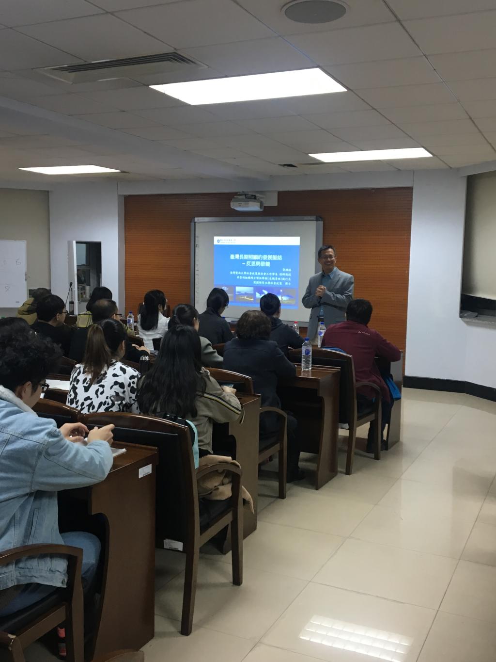 2019年3月5日18点,中国·tyc1286太阳成集团(股份)有限公司第39场学术名家讲座在东荣大厦9楼会议室举行。台湾暨南大学社会政策与社会工作学系特聘教授、博士生导师、台湾社会政策学会理事长、台湾非营利组织经营管理学会理事长、台湾社会政策与社会工作学刊(TSSCI)主编黄源协教授,作了题为“台湾长期照顾的发展脉络——反思与借镜”的学术讲座。本场讲座由劳动与社会保障系系主任董才生教授主持。
