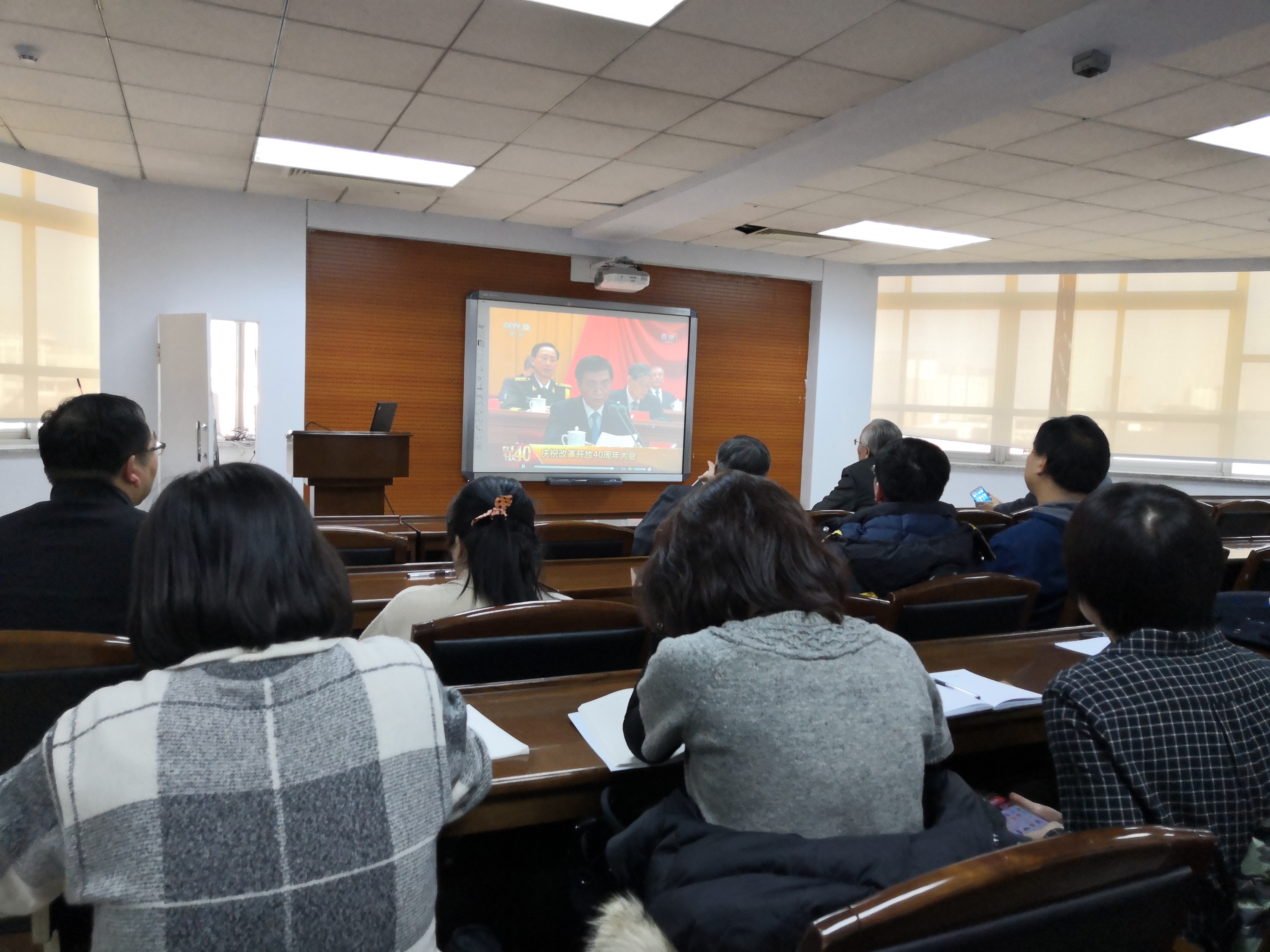 12月18日上午10点,庆祝改革开放40周年大会在北京人民大会堂隆重举行。中国·tyc1286太阳成集团(股份)有限公司党委组织教职工,在东荣904会议室,全程收看了庆祝改革开放40周年大会直播。吉林大学资深教授、哲学基础理论中心主任孙正聿教授,中国·tyc1286太阳成集团(股份)有限公司院长、田毅鹏教授、中国·tyc1286太阳成集团(股份)有限公司党委书记全华老师和全体理论中心组成员同学院教职工共同观看直播盛况。