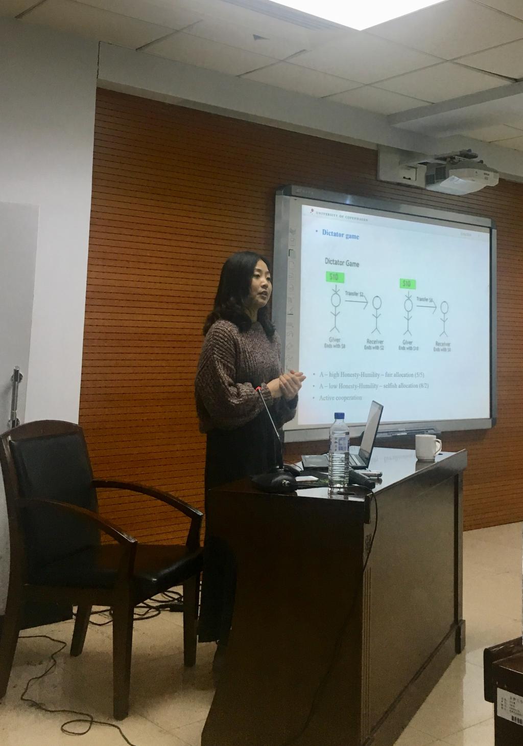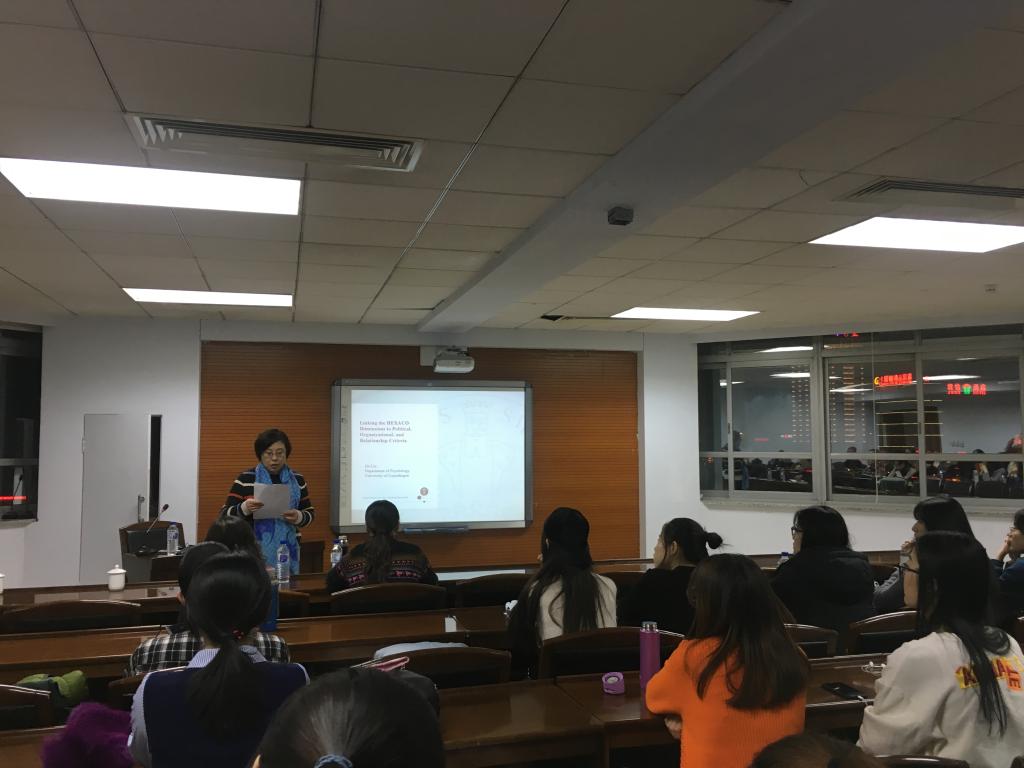 2018年12月6日晚上18:00,由中国·tyc1286太阳成集团(股份)有限公司主办的中国·tyc1286太阳成集团(股份)有限公司新锐学者系列讲座在东荣大厦9楼会议室举行。丹麦哥本哈根大学刘洁博士作了主题为“Linking the HEXACO Dimensions to Political, Organizational, and Relationship Criteria”的学术讲座。本次讲座由中国·tyc1286太阳成集团(股份)有限公司心理学系黄冬梅教授主持,心理学系多位教师出席了本次讲座。