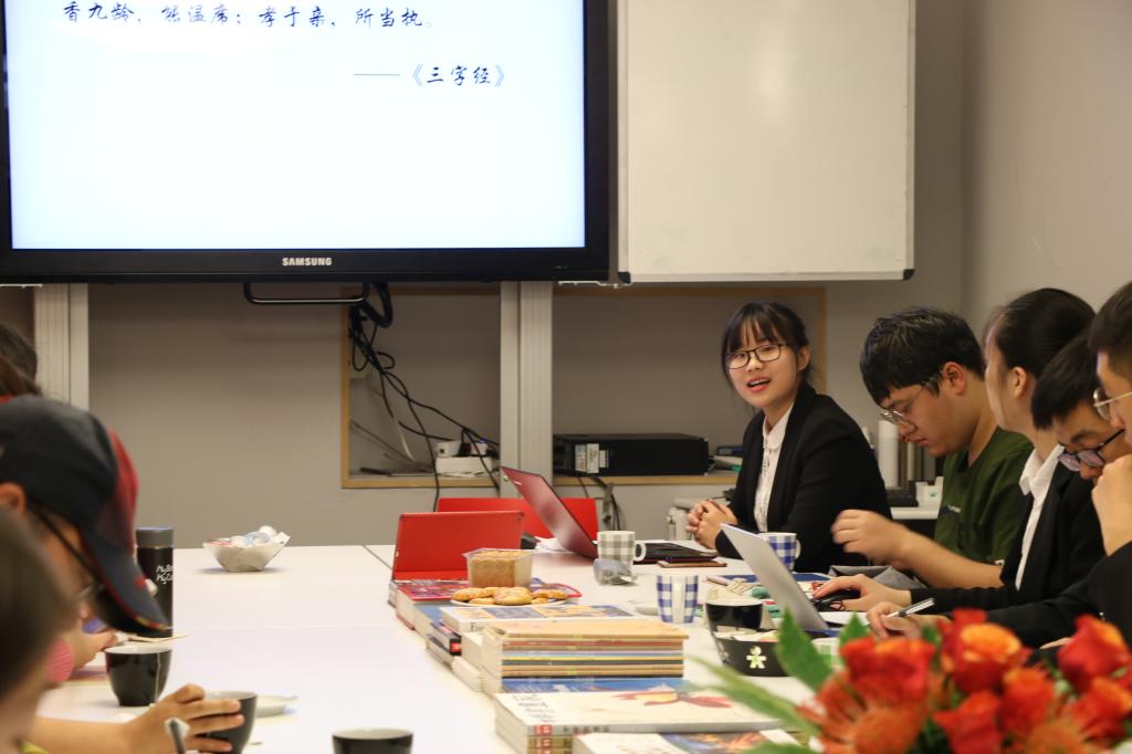 会后,孔子学院代表对李聪老师、赵海英老师、王璇同学进行了采访。李聪老师表示此次工作坊意义重大,同学们的表现都很优异,对能够通过故事讲解儒家义理的方式予以好评,但也表示儒家文化博大精深,对像“孝”“仁”的理解仍有进步的空间。希望以此次工作坊为契机,激发海外学子对中华文化的兴趣,促进文化更好的传播。赵海英老师表示中方文化的构成重要的是具备同情心,这类活动的开展很有意义。王璇同学解释了自己报告的思路和逻辑,并表示以后会积极参加这类活动,在与各位老师的交流中收获很多,交流的过程也是彼此成就的过程。