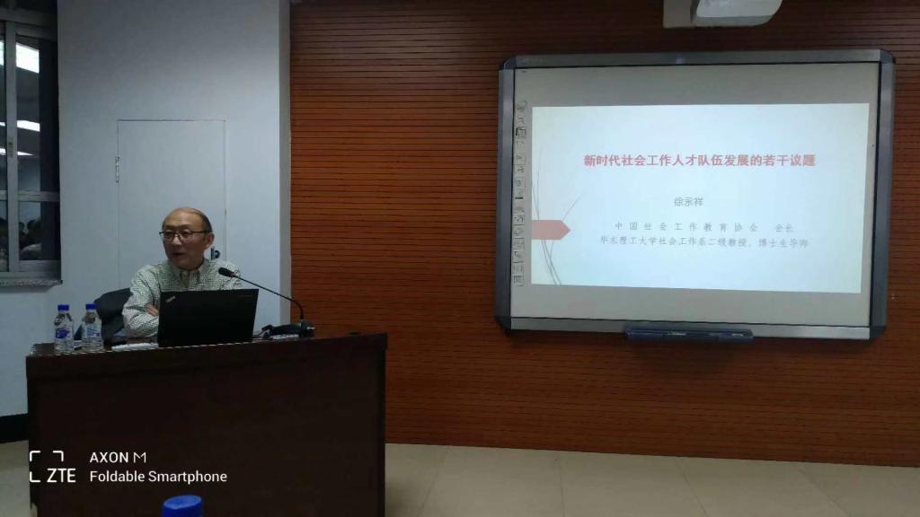 2018年11月03日18点,中国社会工作教育协会会长、民政部全国社会工作专家委员会副主任委员、国际社会工作教育联盟执行委员、上海高校智库社会工作与社会政策研究院院长、华东理工大学社会与公共管理学院前院长徐永祥教授,受邀在吉林大学东荣大厦904会议室做了题为“新时代社会工作发展的若干问题”的学术报告。中国·tyc1286太阳成集团(股份)有限公司社会学系、社会保障系的部分师生前来聆听此次讲座。本次讲座由中国·tyc1286太阳成集团(股份)有限公司院长田毅鹏主持。