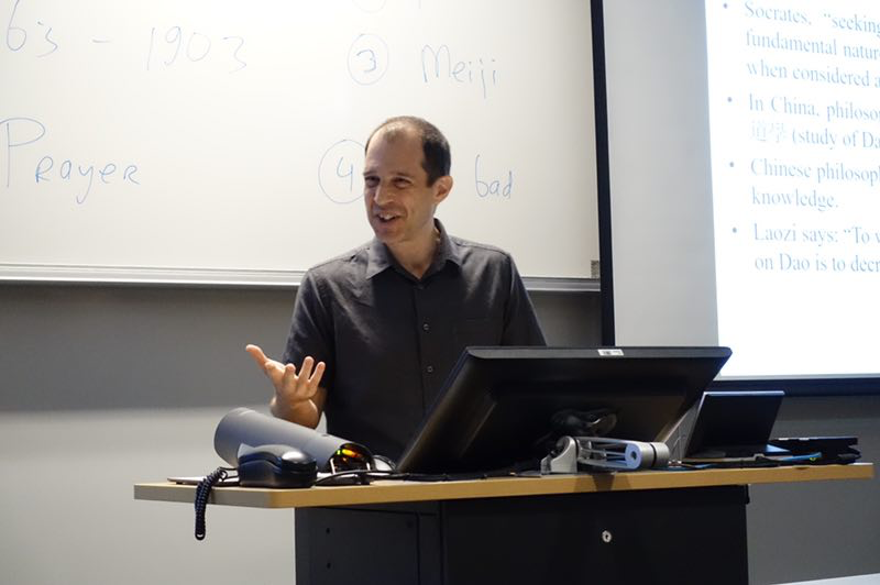 工作坊活动首先由香港科技大学的Eric Nelson教授作主题发言。Nelson教授的发言集中论述当代新儒家思想在中西方比较哲学研究中的影响与贡献。在发言中,Nelson教授回顾了哲学作为一门学科在西方历史中的发展及其所研究的问题。在此基础之上,Nelson教授以当代新儒家所发表的《为中国文化敬告世界人士宣言》为例来说明当代新儒家在西方哲学思想影响下的对于中国古代文化资源进行重新建构的开创性贡献。Nelson教授认为,正因为当代新儒家的努力,使得中西方思想在学理上达到了真正意义上的碰撞。在Nelson教授发言后,我院高天驹、钟玉晨、梅寒、李鸽、郝金花五位同学与香港科技大学的四位同学一起参加了学生论坛环节。我院五位同学用英文就东西方比较哲学问题表述了各自的观点,并就相关问题与香港科技大学的同学们进行了讨论。高天驹同学认为,庄子与康德分别以“逍遥游”和“意志自律”为实质建立起各自的自由观,庄子通过“体道”实现“绝对自由”,而康德则通过道德主体的实践达到自由,将人的真正自由建立在道德律之上;钟玉晨同学论及康德伦理学中唯一的情感因素——敬重感,并对敬重感在康德道德哲学体系中作为道德行为的本质要素的合理性进行说明;梅寒同学提出,依中国哲学史自身发展的历程,中国哲学未来的发展将会从形上的理论框架转向社会政治的体系框架和日常生活中;李鸽同学以保罗·利科解释学中对五种间距功能的理解为背景,提出了在间距概念生产性的积极意义上,从间距视角来理解中西方哲学跨文化研究的可能性;郝金花同学认为,郭象在《庄子注》中,通过对“有”和“无”之间关系的打断,同时打断了常规意义上的生和死的联系,从而回应了魏晋时期竹林一派所带来的对生命和死亡的破坏性的虚无。在学生讨论环节结束后,由来自香港中文大学的David CHAI教授作了此次工作坊的总结发言。CHAI教授以天、死、有等概念的中英文内涵比较为例,指出了中西方哲学概念在指意上的不同,这是在作跨文化哲学研究中需要特别注意的问题。