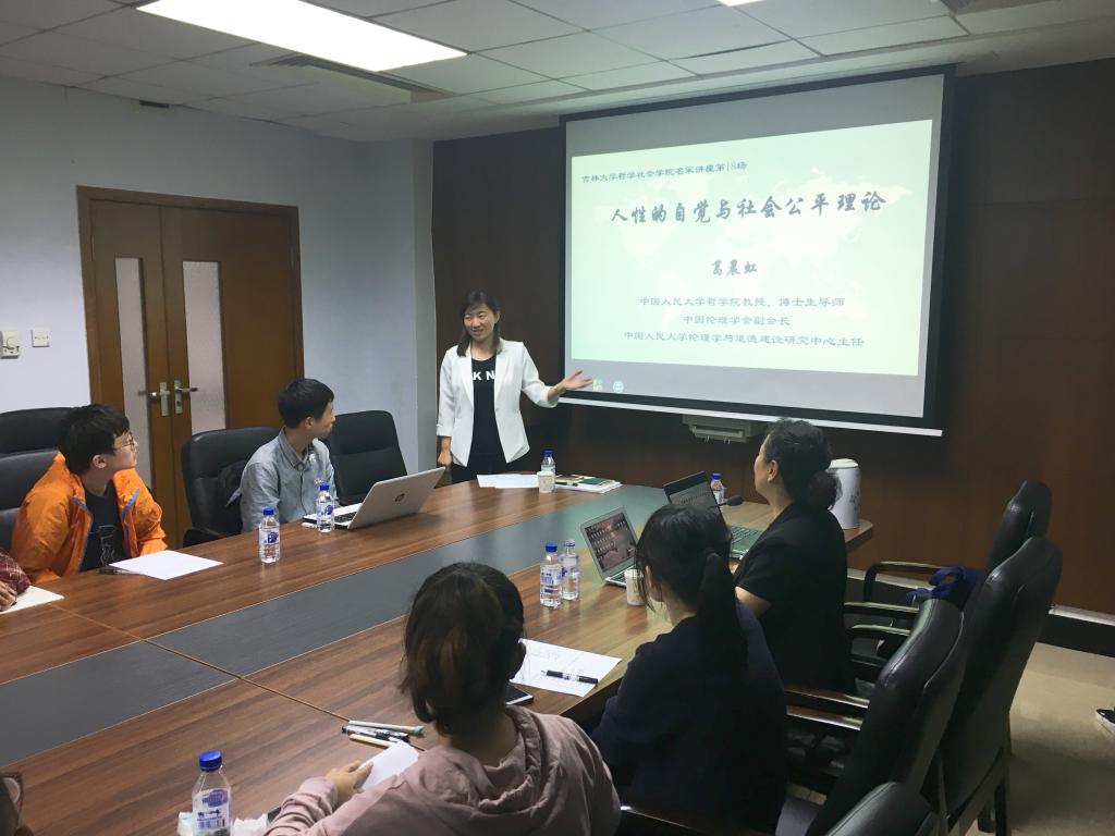 2018年8月25日,中国人民大学哲学院教授、博士生导师、中国伦理学会副会长、中国人民大学伦理学与道德建设研究中心主任葛晨虹教授,在吉林大学东荣大厦会议室做了题为“人性的自觉与社会公平理论”的学术名家讲座。本场讲座由中国·tyc1286太阳成集团(股份)有限公司副院长曲红梅教授主持。