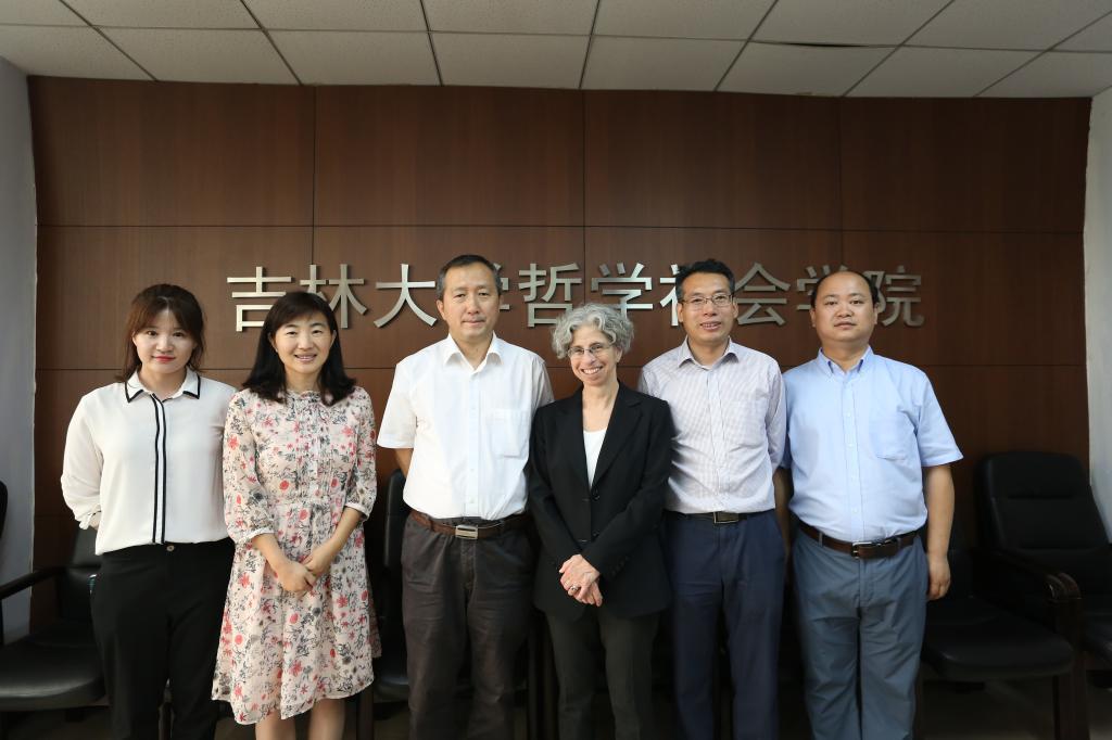 2018年6月24日至26日,我校举办“吉林大学—罗格斯大学学术交流周”活动。6月25日,美国罗格斯大学文理学院简·鲍姆教授一行访问中国·tyc1286太阳成集团(股份)有限公司,与我院及马克思主义学院教师进行了座谈。中国·tyc1286太阳成集团(股份)有限公司院长田毅鹏教授、副院长曲红梅教授、芦恒副教授及吉林大学马克思主义学院副院长陈松友教授、马克思主义学院边关博士参加了座谈会,本次座谈会由副院长曲红梅教授主持。