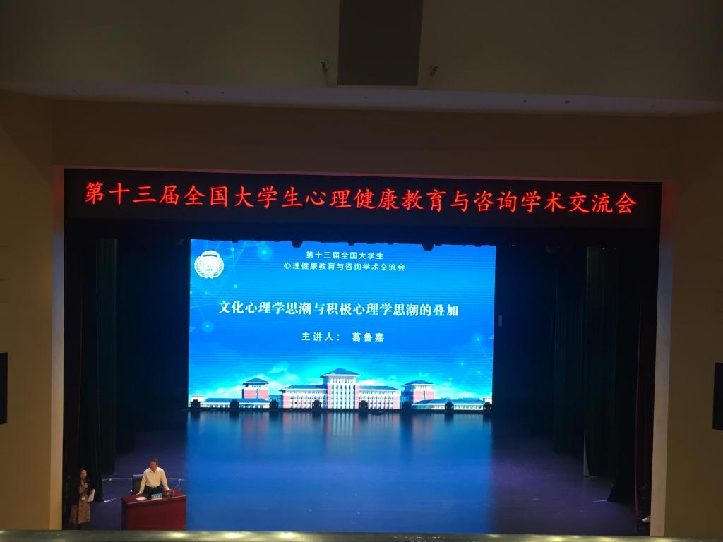 2018年6月20日-22日,“第十三届全国大学生心理健康教育与咨询学术交流大会”在吉林大学召开。大会汇聚了国内外从事心理健康教育研究与实务的千余名专家学者。教育部人事司和思政司张东刚司长,吉林省教育厅潘永兴副厅长,中国心理卫生协会刘靖副理事长,吉林大学党委书记杨振斌教授,以及来自美国内布拉斯加大学,中国心理卫生协会大学生心理咨询专业委员会,等领导、专家和学者,在大会上作了指导讲话和学术报告。吉林大学党委副书记冯正玉主持了会议。葛鲁嘉教授应邀在21日的大会上作了“文化心理学思潮与积极心理学思潮的叠加”的专题学术报告。报告指出了,心理健康教育的学术研究可以是针对接受教育的学生群体和提供教育的专家学者的现实目标、具体操作、基本工具、存在问题的,也可以是针对涉及心理健康教育的当代思潮、理论流派、核心学说、基本理论的。那么,在当代十余种流行的心理学思潮中,文化心理学思潮和积极心理学思潮则是相互叠加的对心理健康教育有着重大影响的学术研究和思想理论的潮流。因此,对此所进行的学术考察、研究探索、思想突破和理论创新,就成为推进我国大学生心理健康教育与咨询的非常重要的方面。文化心理学思潮是从无文化的心理学走向了有文化的心理学,积极心理学思潮是对传统心理学的消极面的积极地批判和转换。两种重要的心理学思潮形成了叠加,共同构成了促进心理健康教育的核心理念和学术资源。报告引起了与会者的重要反响和极大关注。
