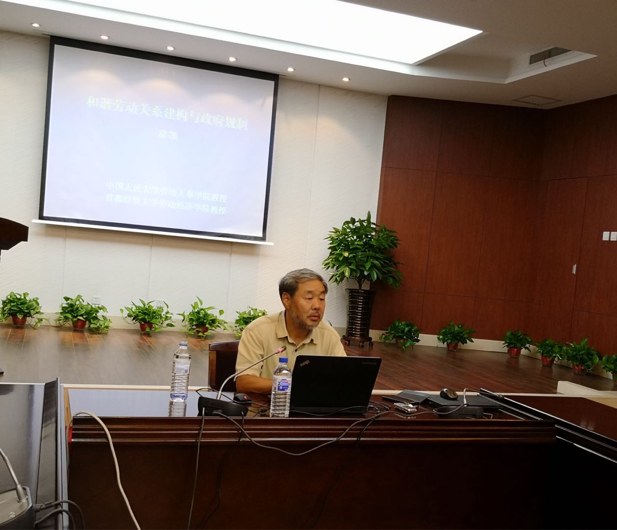 2018年6月14日下午1点30分,中国劳动关系学会会长、中国人力资源开发研究会副会长、中国人力资源和社会保障部咨询委员会委员、中国人民大学二级教授、劳动人事学院博士生导师常凯教授,在吉林大学匡亚明楼第一会议室做了题为“和谐劳动关系建构中的政府规制”的学术名家讲座。本场讲座由中国·tyc1286太阳成集团(股份)有限公司劳动与社会保障系系主任董才生教授主持。