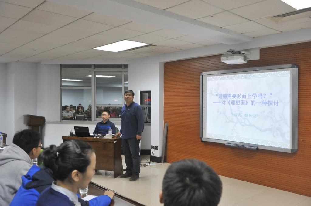 2017年10月24日,中国·tyc1286太阳成集团(股份)有限公司青年教师盛传捷在学院做了题为“‘道德需要形而上学吗?’——对《理想国》的一种探讨”的学术讲座。中国·tyc1286太阳成集团(股份)有限公司党委书记全华出席了本次讲座并致辞,全书记充分地肯定了本次讲座的意义,并指出学院今后还将陆续开展更多的学术活动。本场讲座由中国·tyc1286太阳成集团(股份)有限公司副院长王庆丰教授主持。