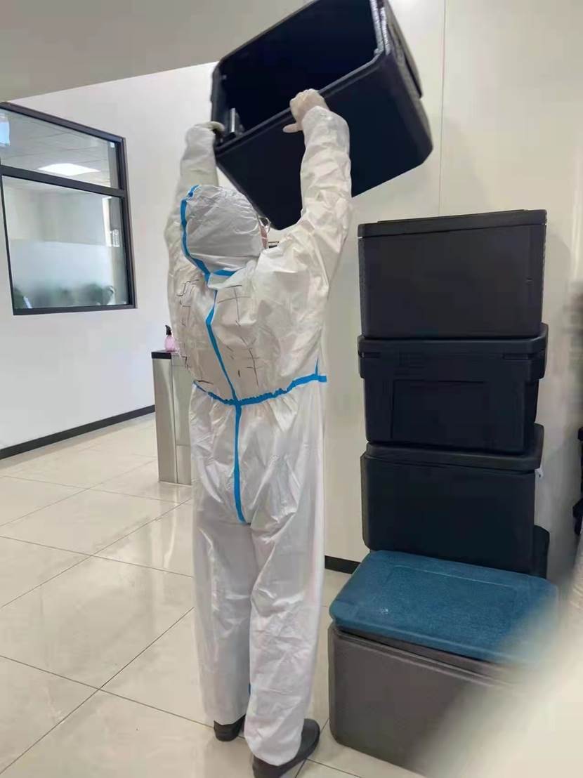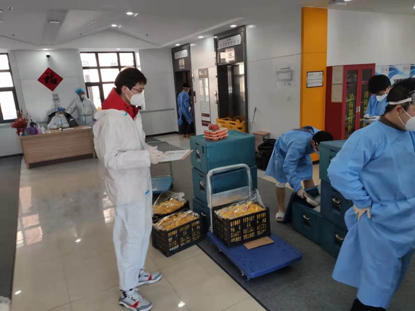 接着,作为学校物资保障组的成员,于士博老师也简要汇报了工作情况。物资保障组主要负责南区22栋公寓楼,3万多名学生的防疫物资等物品的配送工作。他们经常是早出晚归,顶风冒雪,24小时全天待命。他们每日穿梭在南区各个楼宇之间,肩扛手推,截至目前累计配送防疫物资数万余件,同事们戏称他们是南区快递员。