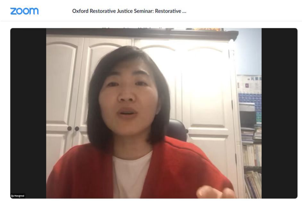 我院曲红梅教授从2021年10月21日-2022年3月17日参加了由牛津大学主办的“恢复性正义系列讨论会”。该系列讨论由牛津大学全球展望与发展研究院发起,一共四次会议,是为关于“恢复性正义理论、政策和实践”的线下专题研讨会做准备,旨在加强英国、欧洲和中国学术界之间的联系。四次讨论的主题分别是“恢复性正义的哲学根源和社会关联”、“司法正义体系中的恢复性正义”、“恢复性正义与性别暴力”、“警察部门与恢复性正义。国内参与大学包括吉林大学、北京师范大学和南京大学等。