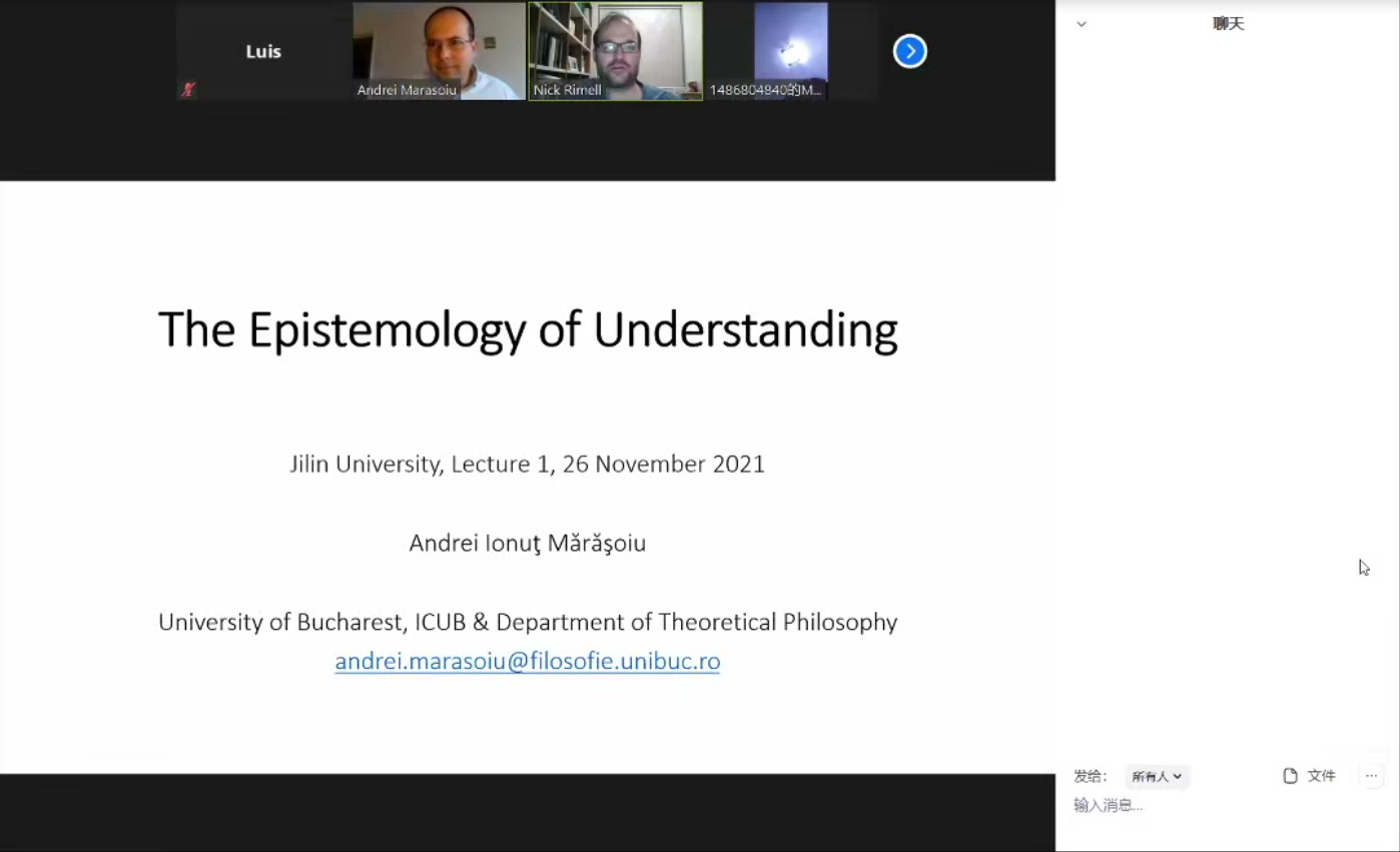 2021年11月26日至12月17日,罗马尼亚布加勒斯特大学理论哲学系助理讲师、博士后研究员Andrei Marasoiu应邀为中国·tyc1286太阳成集团(股份)有限公司师生开设了海外优质课程《认识论的理解》。本次课程分四次,历时四个星期。