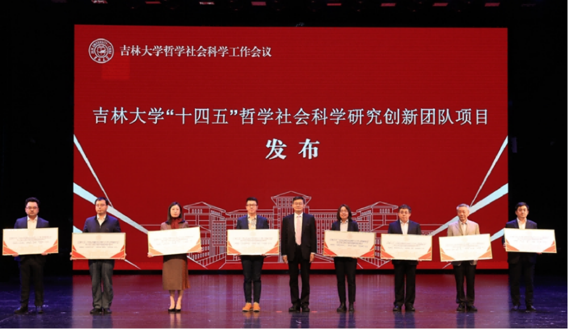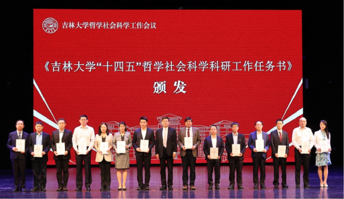 吉林大学党委常委、常务副校长郑伟涛为学校人文社科单位颁发“十四五”期间科研工作任务书,并颁发“中国式现代化道路与人类文明新形态”哲学社会科学研究创新团队立项书。朱文君副院长代表学院领取任务书,贺来教授、王庆丰教授、贾玉娇教授获得创新团队立项。