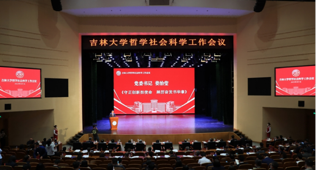 2022年9月1日,为了促进全校哲学社会科学工作者坚持以习近平新时代中国特色社会主义思想为指导,深入学习贯彻习近平总书记关于哲学社会科学的重要论述,提出更多具有主体性、原创性、时代性的理论观点,吉林大学哲学社会科学工作会议在鼎新大讲堂召开。吉林省委宣传部副部长刘立新出席会议并致辞。教育部社会科学司副司长谭方正以视频方式致辞。会议由党委常务副书记冯正玉主持。校党委书记姜治莹出席会议并讲话。吉林大学党委常委、副校长蔡立东解读《吉林大学哲学社会科学高质量发展行动计划》并宣读《关于吉林大学“十三五”哲学社会科学的表彰决定》。