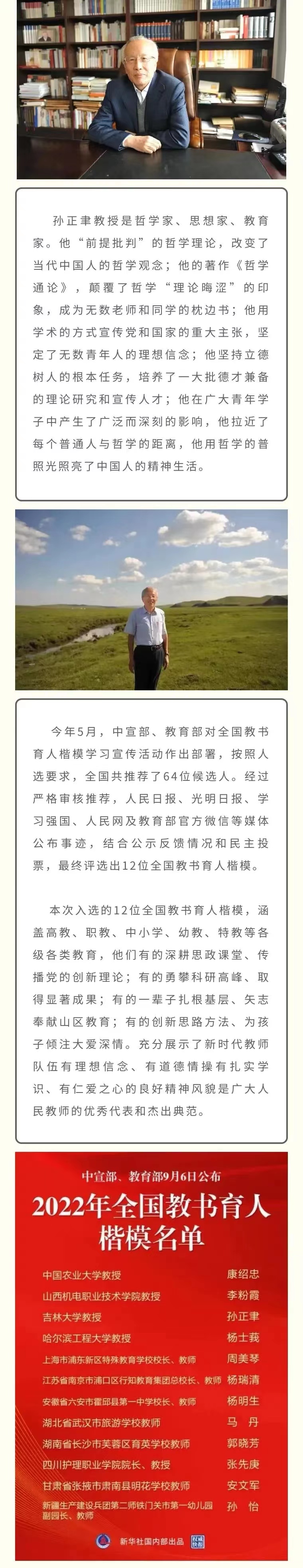 喜报 | 我院孙正聿教授入选2022年全国教书育人楷模