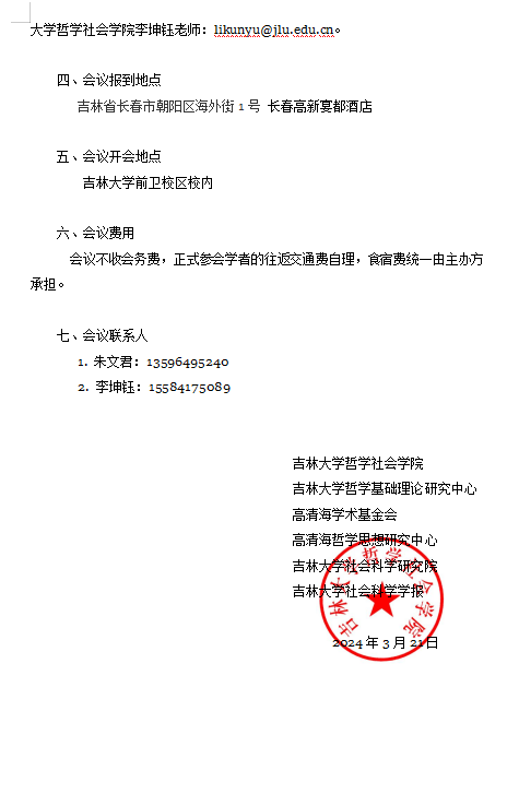 “纪念高清海先生逝世20周年学术研讨会”预备通知