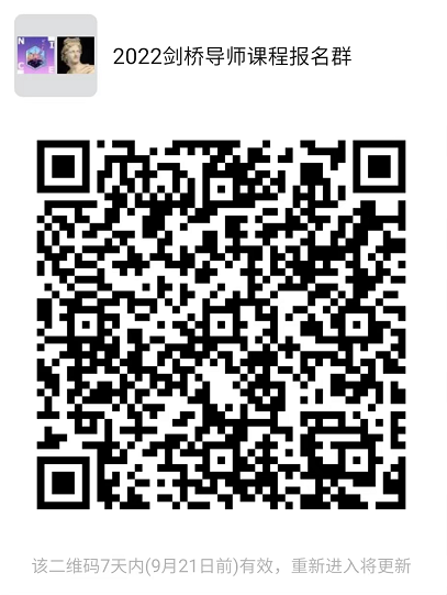 请申请人于2022年9月16日(星期五)上午11:00点前将报名申请表(附件2)、外语成绩证书扫描件、学生证扫描件发送邮件至zhangxinyao@jlu.edu.cn(注明:2022年剑桥项目申请+课程方向+姓名),同时扫描以下二维码,加入微信群,以便接收后续通知。