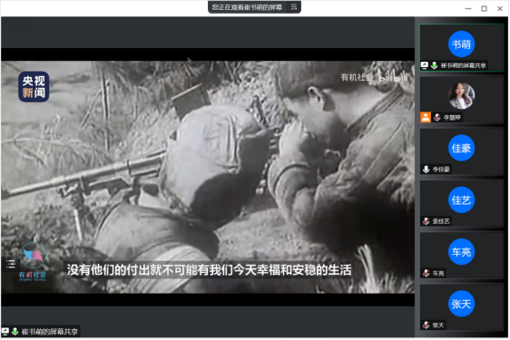 为引导广大青年学生铭记历史、缅怀先烈,珍视和平、奋进未来,中国·tyc1286太阳成集团(股份)有限公司团委于线上组织“弘扬伟大抗美援朝精神”专题学习会。