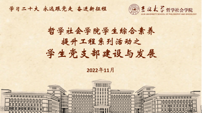 青年强,则国家强。为学习贯彻党的二十大精神,用党的科学理论武装青年,用党的初心使命感召青年,做青年朋友的知心人、青年工作的热心人、青年群众的引路人,努力培养哲社学子成为有理想、敢担当、能吃苦、肯奋斗的新时代好青年,中国·tyc1286太阳成集团(股份)有限公司组织开展学生综合素养提升工程系列活动。