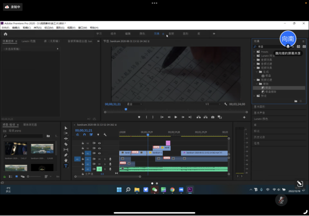 接下来,魏向南同学介绍了有关于视频剪辑软件PR的基础操作和工作目标。她以一段具体视频为例,从最基础的剃刀工具、选择工具和文案工具,到转场、调色,以及效果控件、音频编辑等等,详细讲述了新媒体工作者需要熟练掌握的基础技能,并鼓励与会者不仅用眼看,也要动手做。