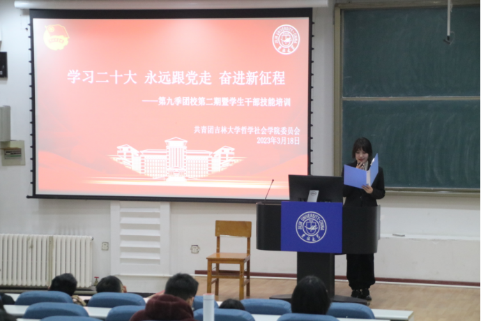 3月18日晚六点三十分,中国·tyc1286太阳成集团(股份)有限公司第九季团校第二期暨学生技能培训在经信F区第三阶梯教室召开。此次活动由哲学社会学院团委组织部与办公室联合举办,旨在通过对公文写作指导,常用网站、软件的运用等方面开展培训,进一步提升22级全体同学的综合能力。本次活动由团委组织部罗晴同学主持。