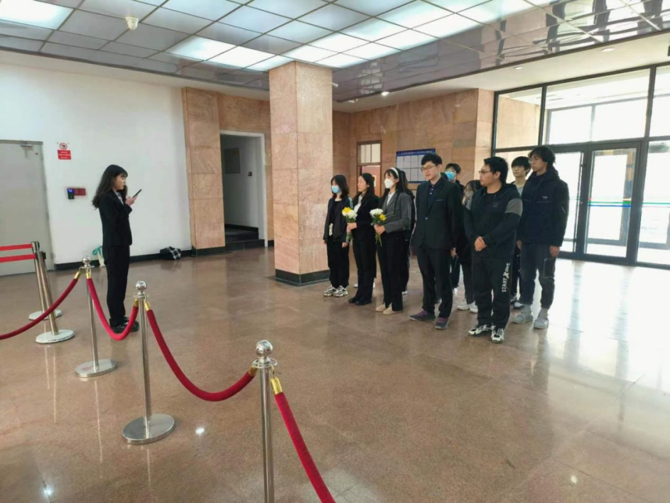 同学们认真聆听着主持人同学们的讲解,仔细感受着从文字中浮现出的学术先贤们的奋斗岁月。随后,学生代表们分别上前擦拭雕塑、献花。