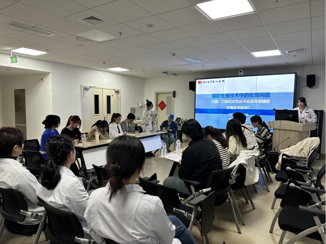 在辩论赛期间,吴乙时医生通过自身实操的案例引出主题:“己绝经患者应该/不应该采用辅助生殖技术助孕”。本次比赛正方由来自吉大二院的覃慧、易鹭和余婉淳同学,以及我院哲学专业胡熙瑞、社会学类专业吴柳荭、应用心理学专业文茹同学组成;本次比赛反方由来自吉大二院的穆星彤、陈施宇同学,以及我院哲学专业刘书源、李祥坤和应用心理学专业杨滟丹同学组成。