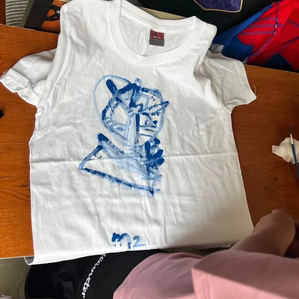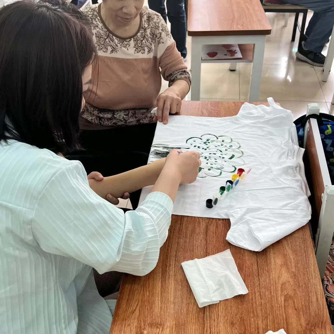 本次的活动内容是绘制T恤。志愿者与孩子们一同在纯白的T恤上进行手工绘画,在拉进彼此心灵上的距离的同时,也传达出小朋友们心中那份难以用语言表达出的灵感。绘制结束之后,志愿者和小朋友们同绘制的T恤进行合影,并将T恤送给了孩子们,作为这次美好回忆的留念。