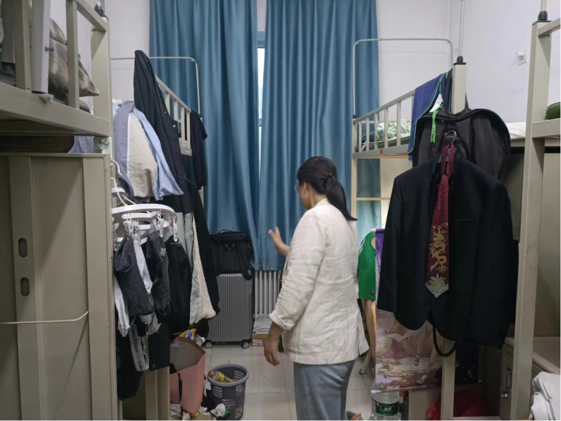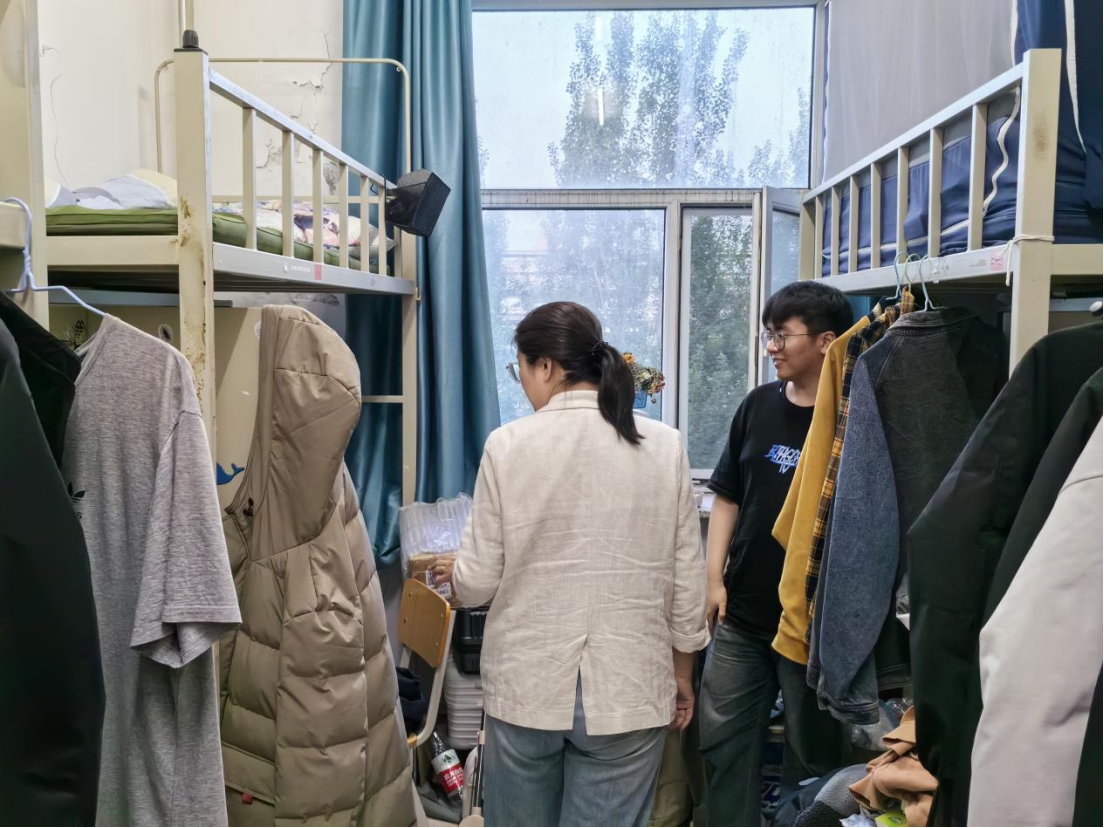 来到寝室,刘畅老师向同学们认真宣讲安全知识,提醒同学们严禁在寝室使用大功率违规电器,外出务必做到断电断水;严禁夜不归寝,不要留宿外人;面对接下来的端午节假期,刘老师要求同学们严格执行日常请销假和外出报备制度,务必同监护人互通信息,合理规划自己的外出行程,避免耽误有关课程。