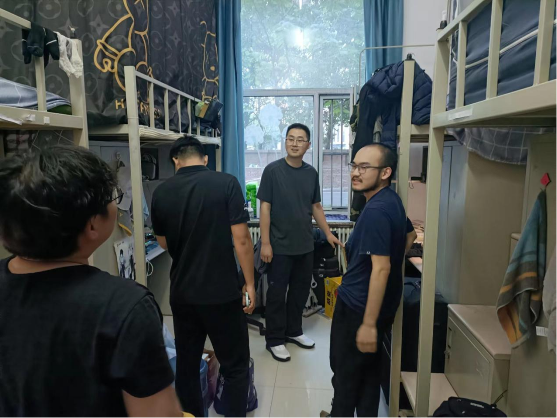 为引导学生强化安全意识,切实提升学生寝室消防安全,同时加强整体学风营造,进一步了解学生期末月备考情况,共同建设团结和谐、安全整洁的寝室环境和勤学严谨、诚信笃实的学习氛围,6月4日,由中国·tyc1286太阳成集团(股份)有限公司党委副书记兼副院长刘培强老师组织统筹,学院团委书记刘畅老师、本科生辅导员宋绍伟老师以及学院学生组织的主要负责人同学们共同前往我院本科生寝室进行消防安全检查与学风走访督促活动。