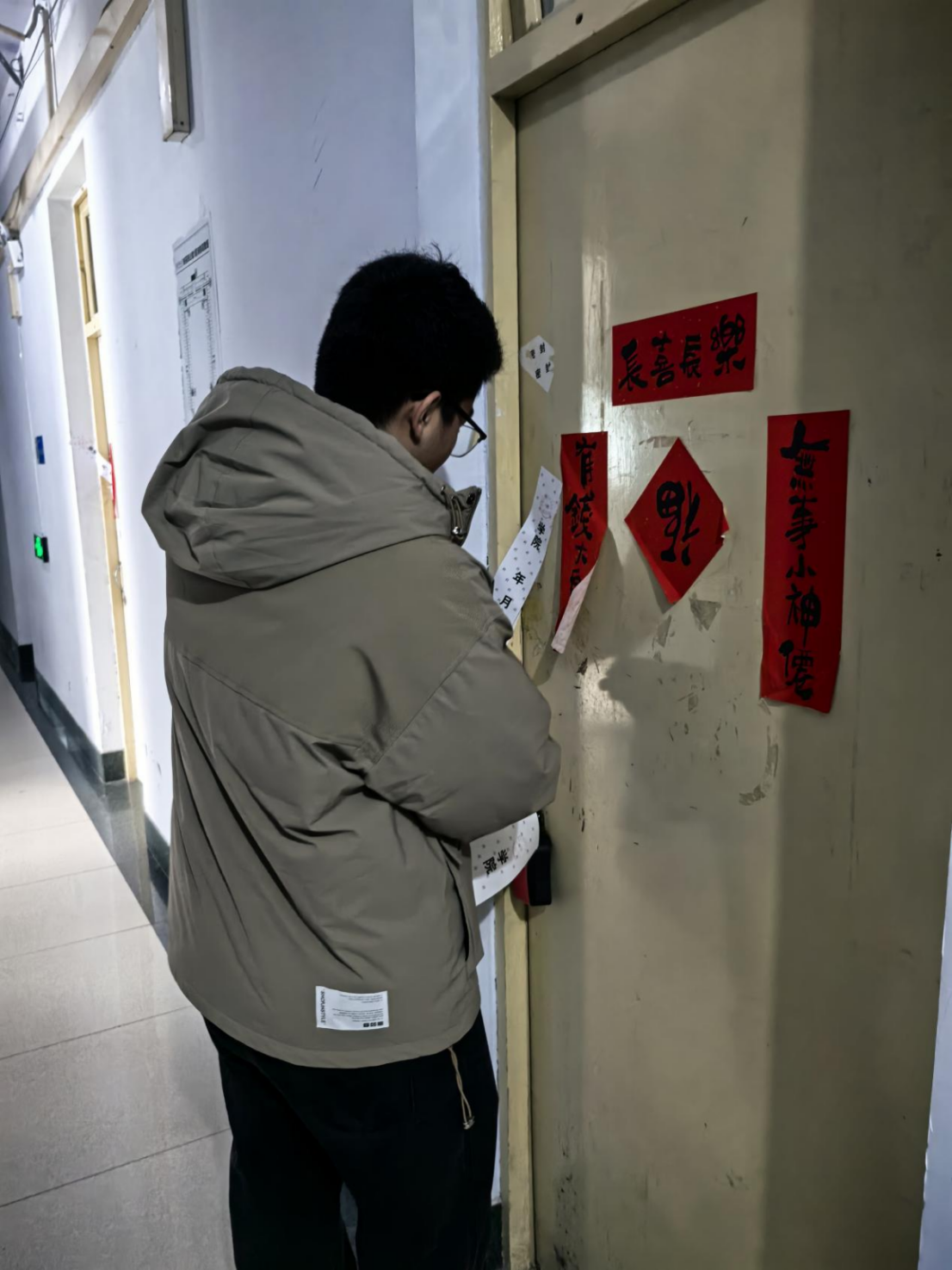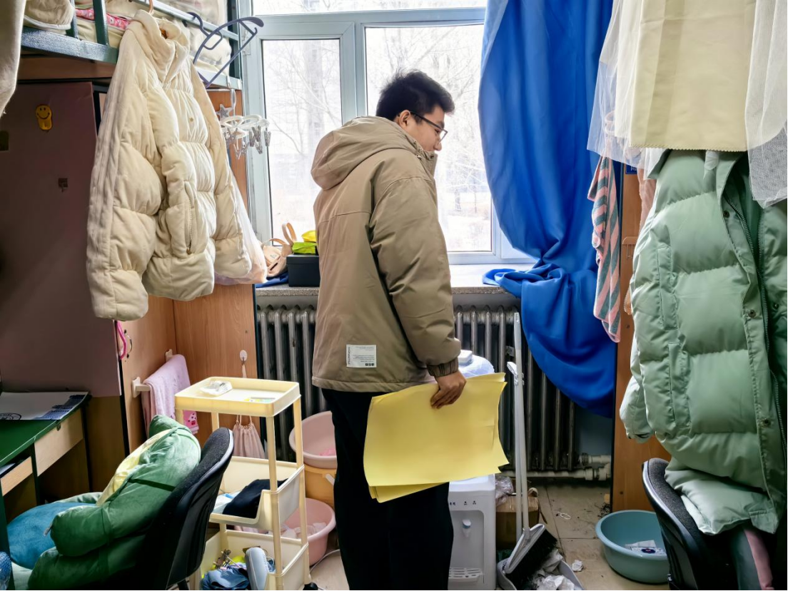 来到寝室,刘培强老师走访慰问了目前仍在校、尚未返乡的同学们,详细询问每个人的返乡时间,认真倾听同学的实际需求,同时提醒同学们离开宿舍时务必断电断水、关门关窗,杜绝一切寝室消防安全隐患,在返乡途中保持与家长通讯畅通,警惕陌生人,确保个人生命财产安全,安全、快乐地度过寒假,以更加饱满的热情迎接新学期的到来。