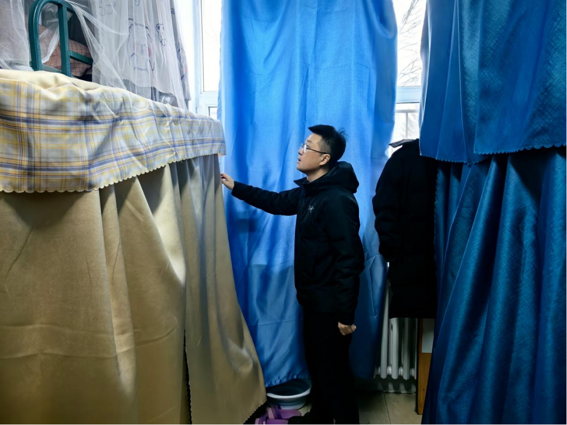 为严格落实学校《关于做好2025年寒假期间本科生管理工作的通知》《关于做好寒假期间学生公寓安全管理工作的通知》及相关会议要求,寒假伊始,学院党委副书记兼副院长刘培强带领学生工作办公室全体人员对我院本科生居住的南苑三、四公寓和北苑二公寓宿舍开展寝室安全检查及寒假留校学生走访慰问工作。