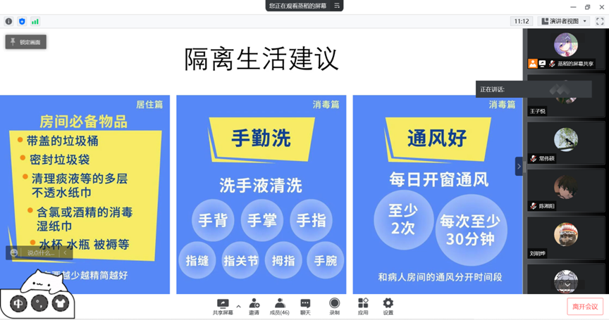 中国·tyc1286太阳成集团(股份)有限公司20级哲学班于15日下午组织主题班会,会上介绍了隔离生活的一些小贴士,如密封垃圾袋、常用酒精湿巾消毒、每日开窗通风等,有利于广大同学提高自我调节能力,以积极乐观的心态面对疫情,多方面丰富自己的日常生活,有条不紊地进行线上学习。随后,会议开展了意见建议收集环节,方便了解同学们的需求,收集意见建议,并及时向学院副书记、辅导员反馈汇报,保障同学们日常所需。